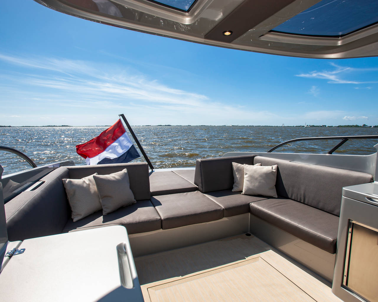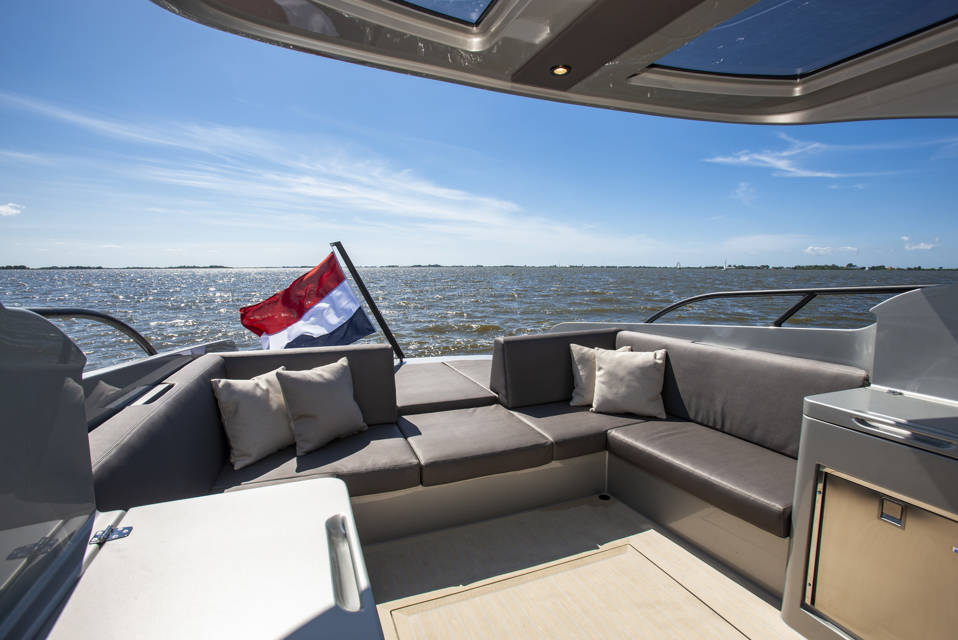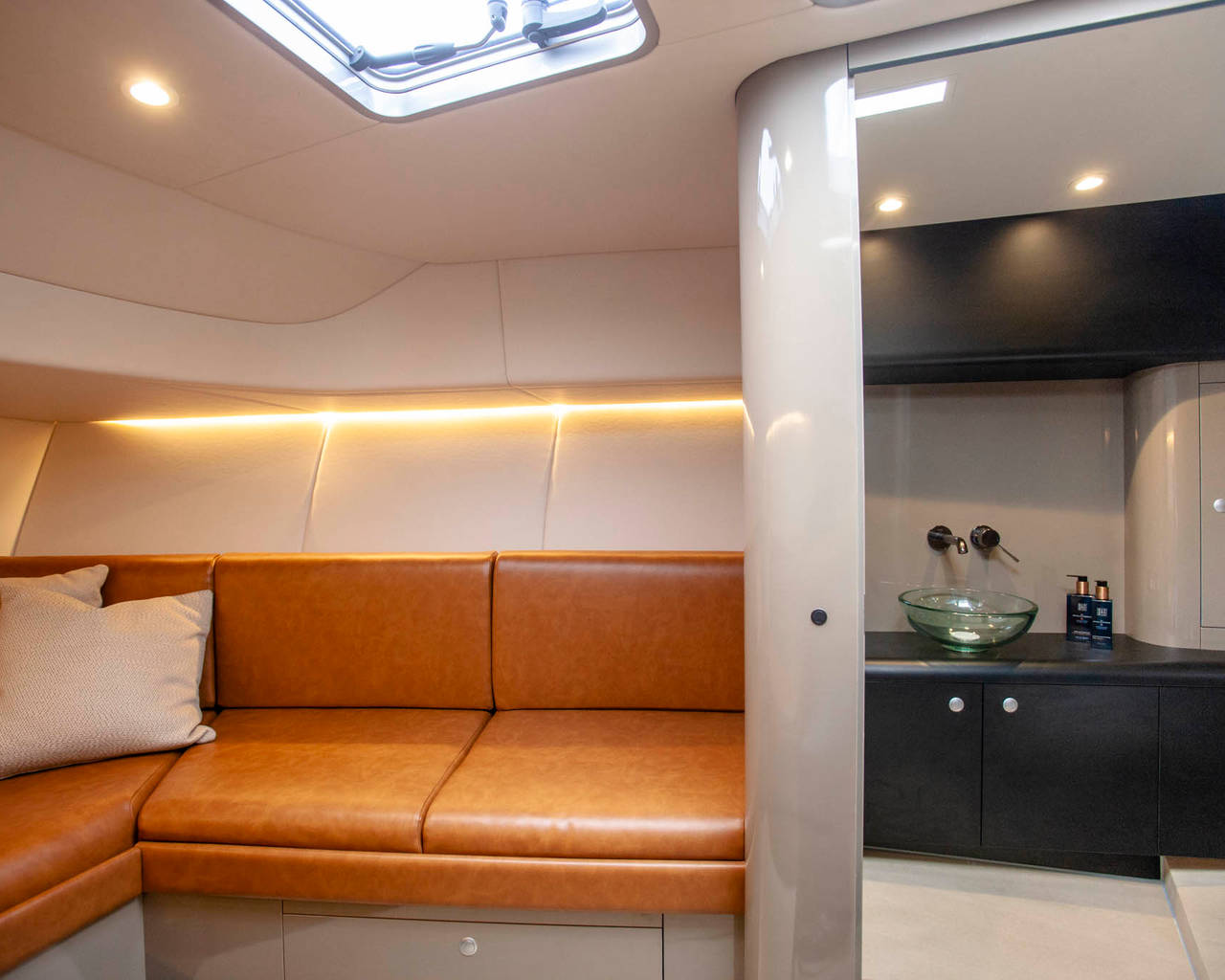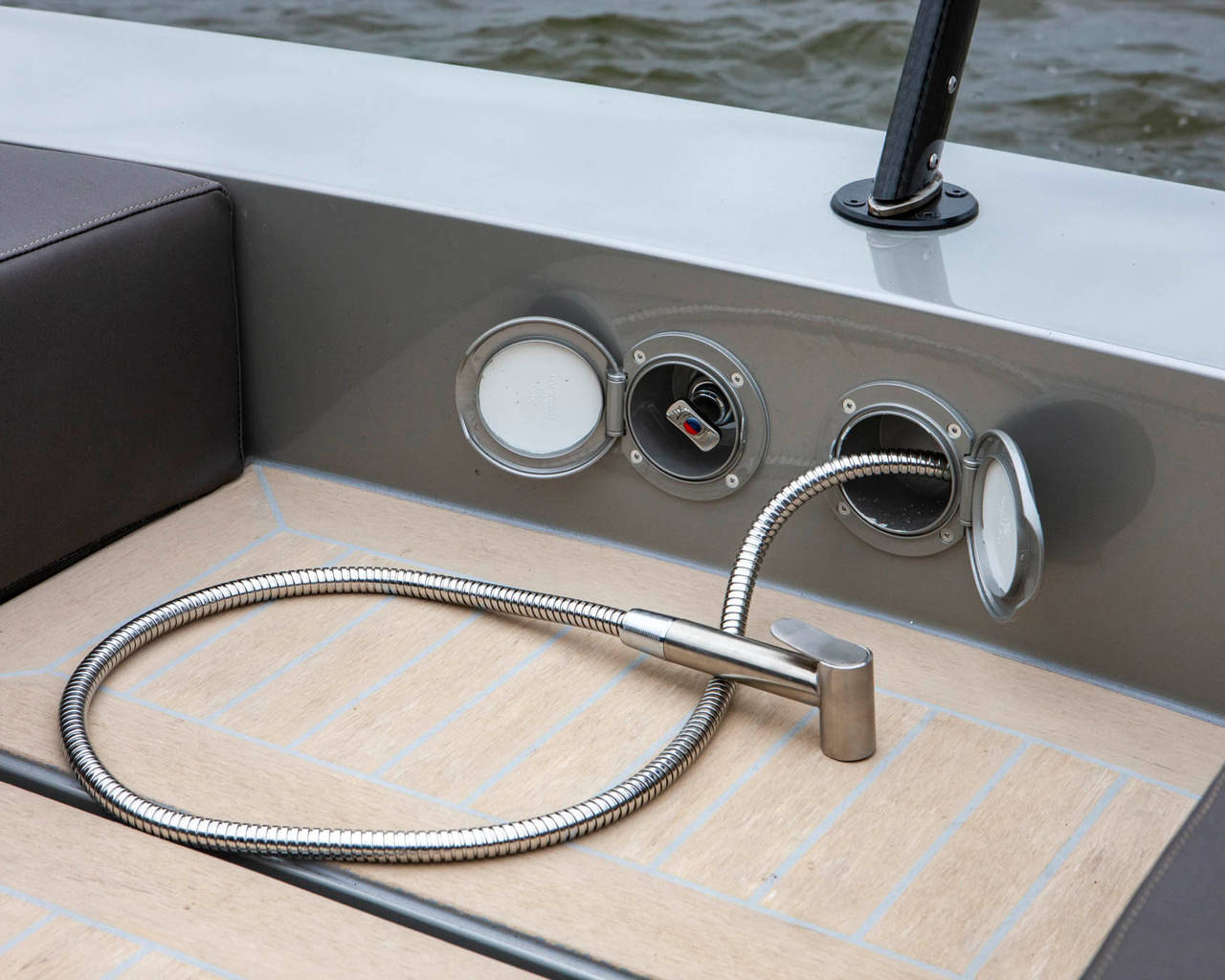 De kuip en het onderwaterschip zijn voorzien van dimbare led-verlichting om een unieke en ontspannen ambiance te creëren. Voor het anker is een elektrisch schuifsysteem geïntegreerd.