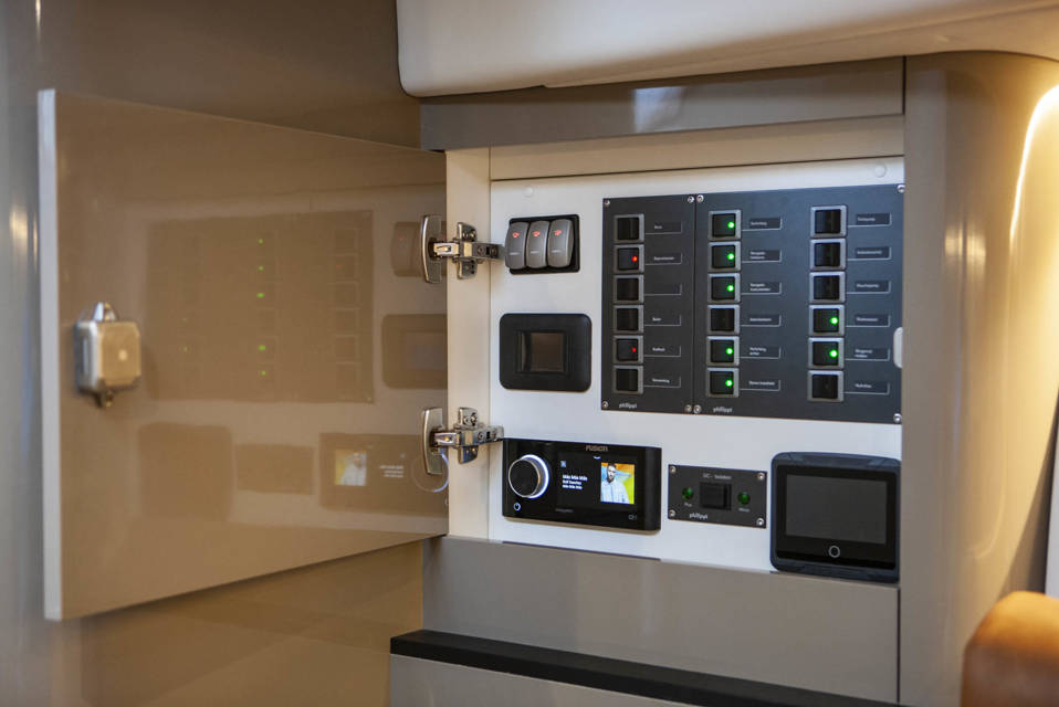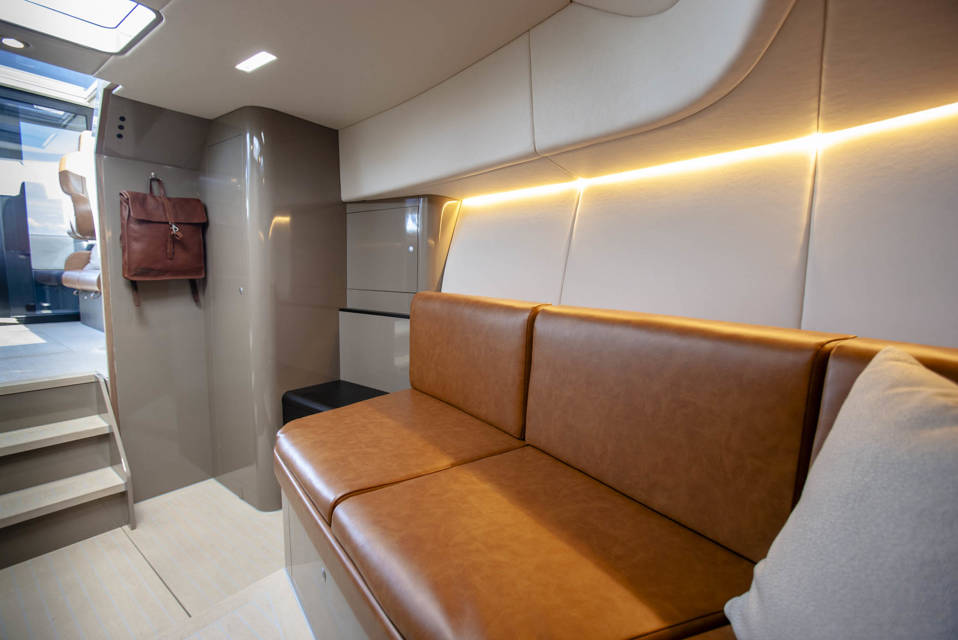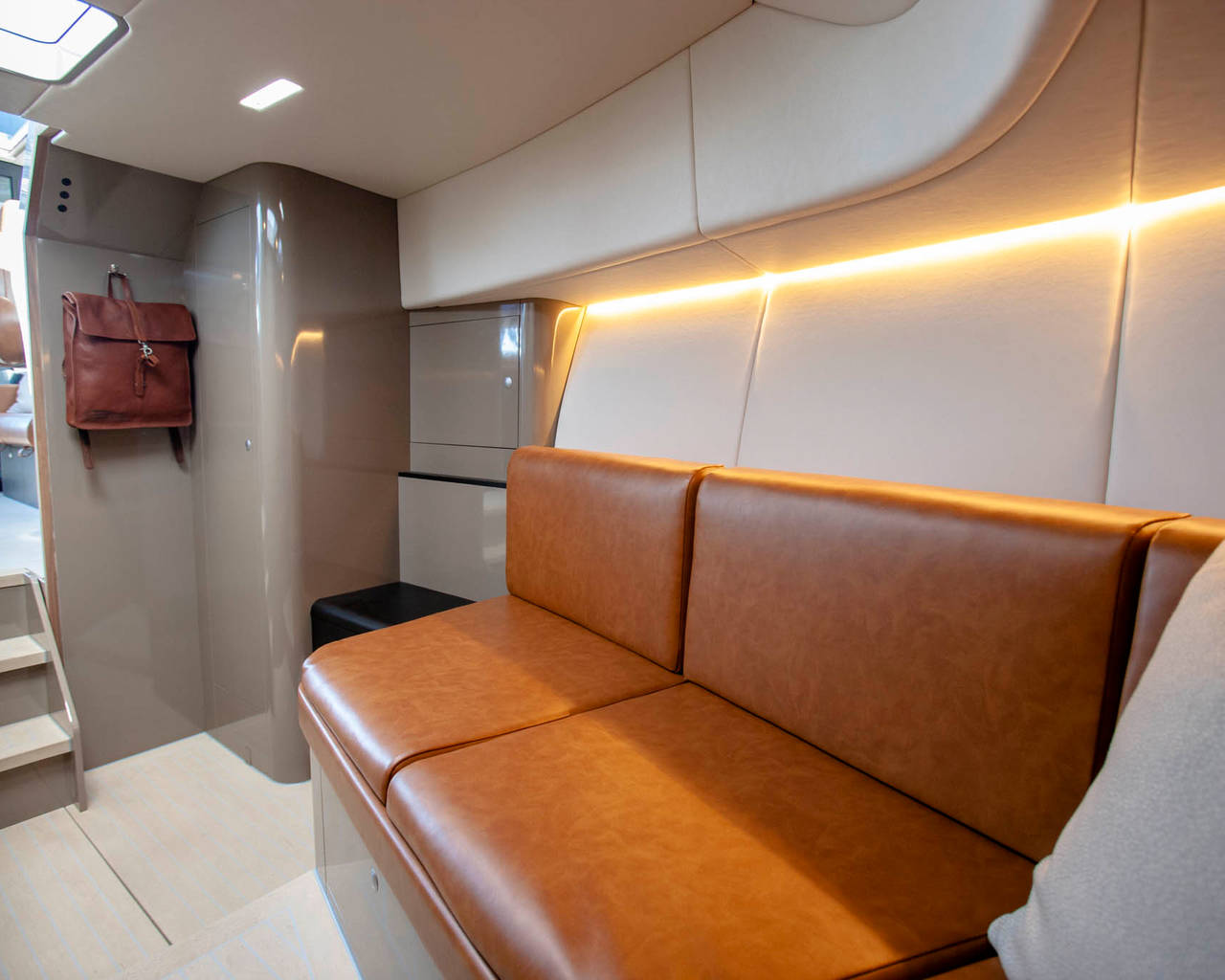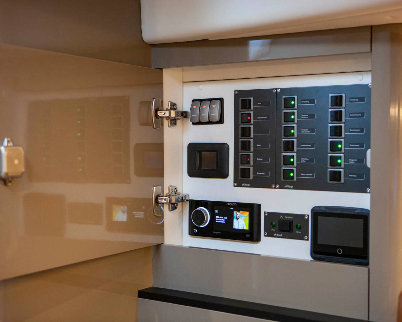 De kuip en het onderwaterschip zijn voorzien van dimbare led-verlichting om een unieke en ontspannen ambiance te creëren. Voor het anker is een elektrisch schuifsysteem geïntegreerd.