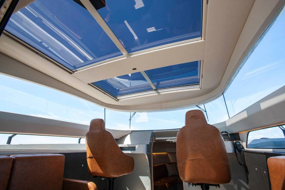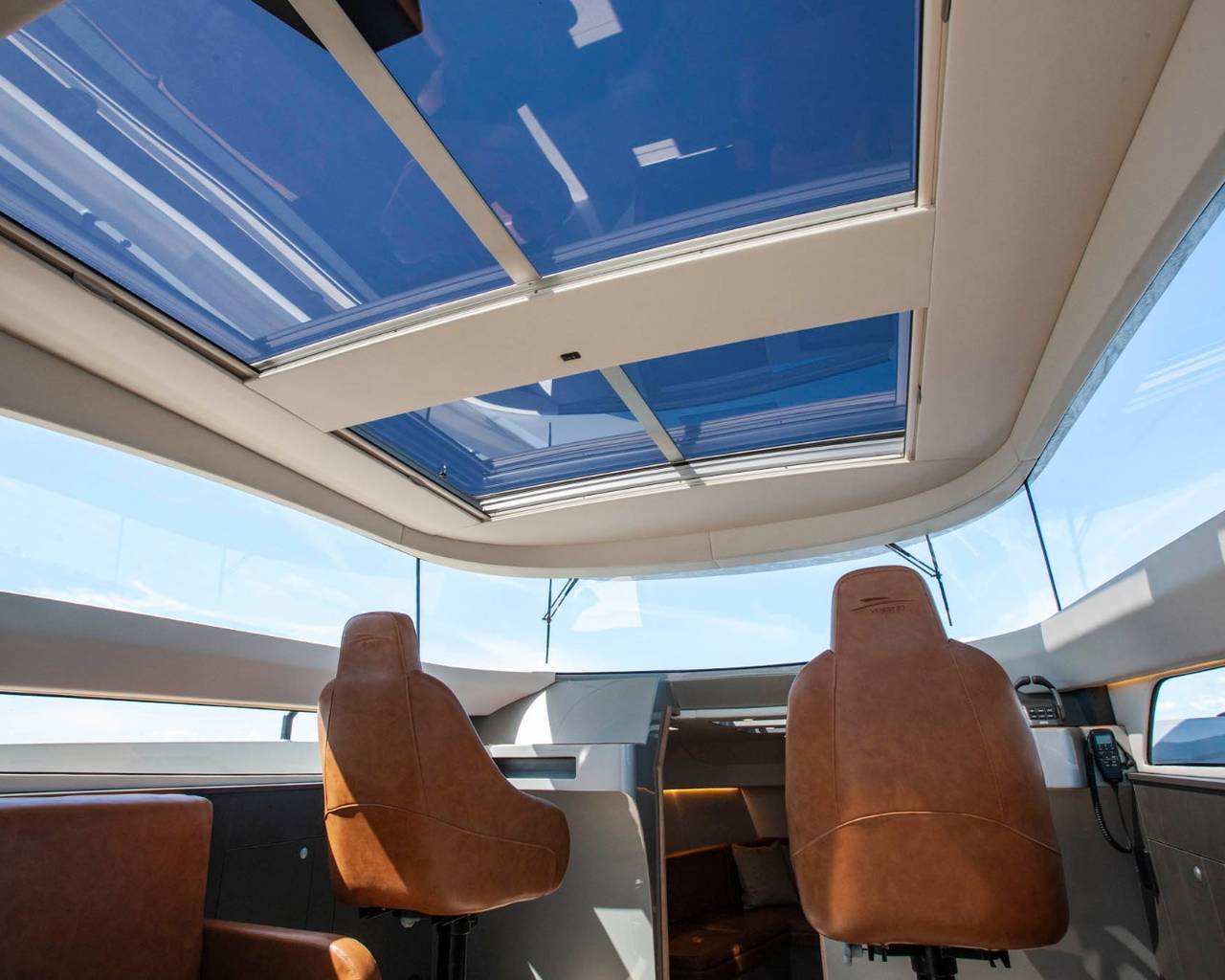 De Venegy V37 kenmerkt zich door een uniek stuurhuis; dit beschikt over een 360 graden panoramazicht met veiligheidsglas wat zorgt voor een maximaal zicht. Het panoramadak zorgt voor maximale lichtinval en zorgt ervoor dat buiten en binnen één geheel worden.