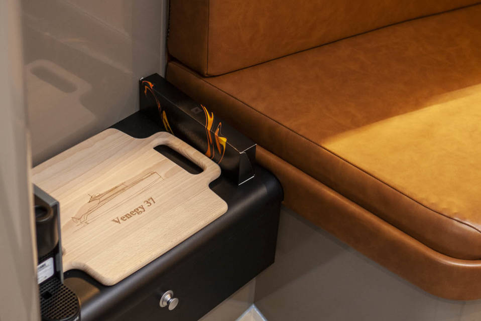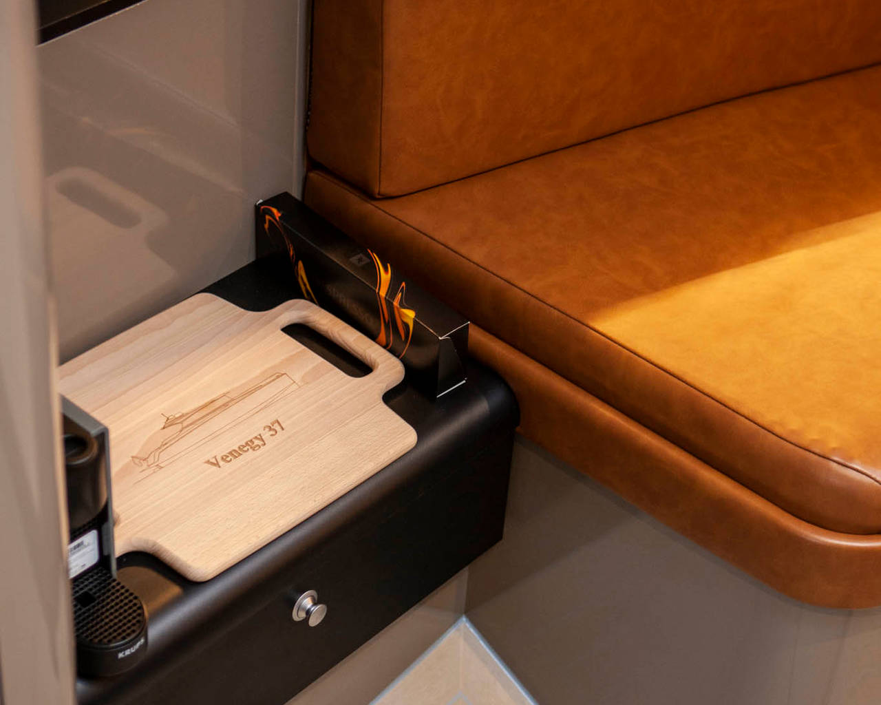 De Venegy V37 combineert de nieuwste ontwikkelingen op het gebied van rompvorm, duurzaamheid en prestaties. Het interieur van de Venegy V37 is strak, modern en bijzonder functioneel. Bij de ontwikkeling van de Venegy V37 is samengewerkt met Vripack Yacht Design. Het in Sneek gevestigde bedrijf behoort internationaal tot een van de grote spelers op het gebied van jachtontwerp en ontwikkeling.