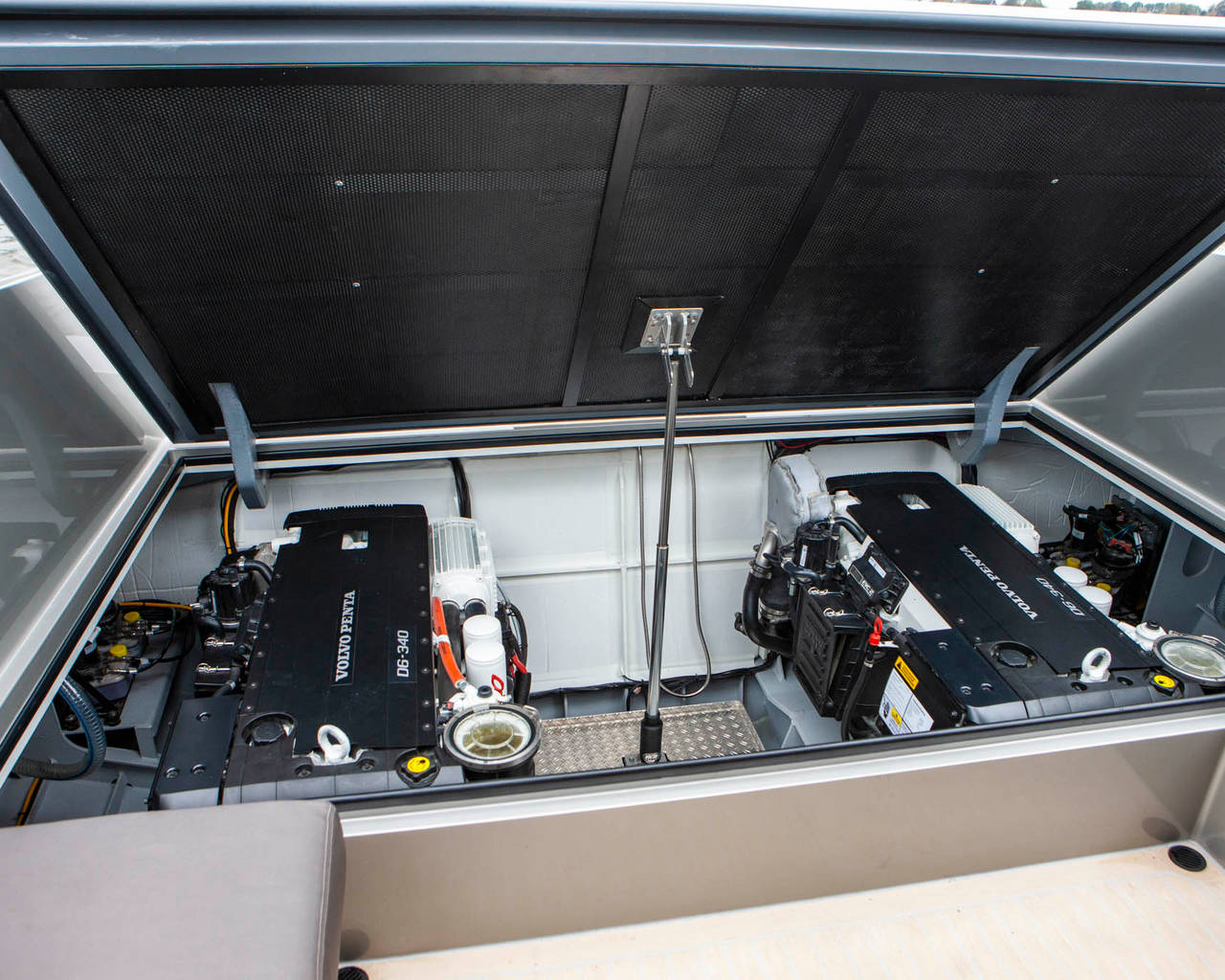 5-cilinder dieselmotoren die garant staan voor topprestaties op het water. De motoren bieden een hoge betrouwbaarheid, laag brandstofverbruik en weinig onderhoudskosten. Op topsnelheid is het geluidsniveau bijzonder laag.