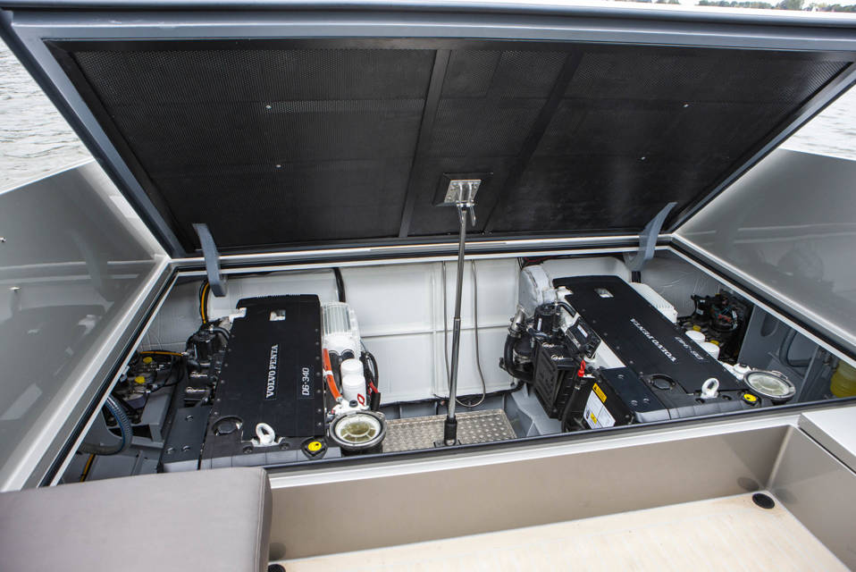 De Venegy V37 levert indrukwekkende prestaties. Het jacht wordt standaard voortgestuwd door twee krachtige Volvo Penta D3-220