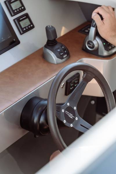 De Venegy V37 onderscheidt zich door zijn unieke stuurhut met panoramisch uitzicht (360 graden) en speciaal veiligheidsglas, dat zorgt voor maximaal zicht en veiligheid.